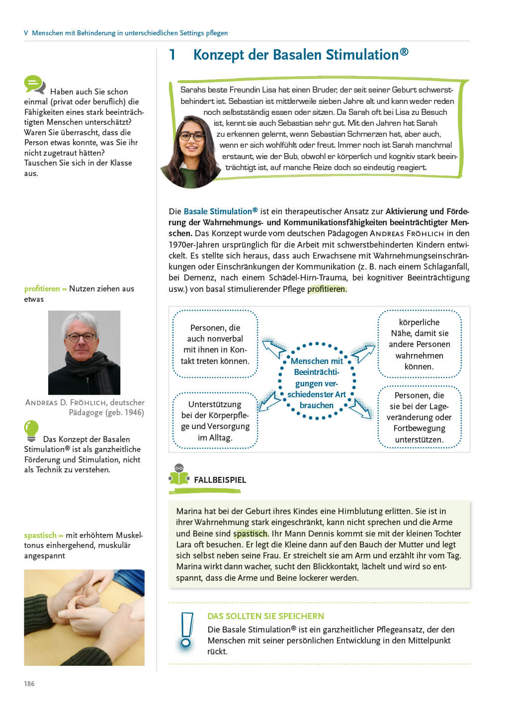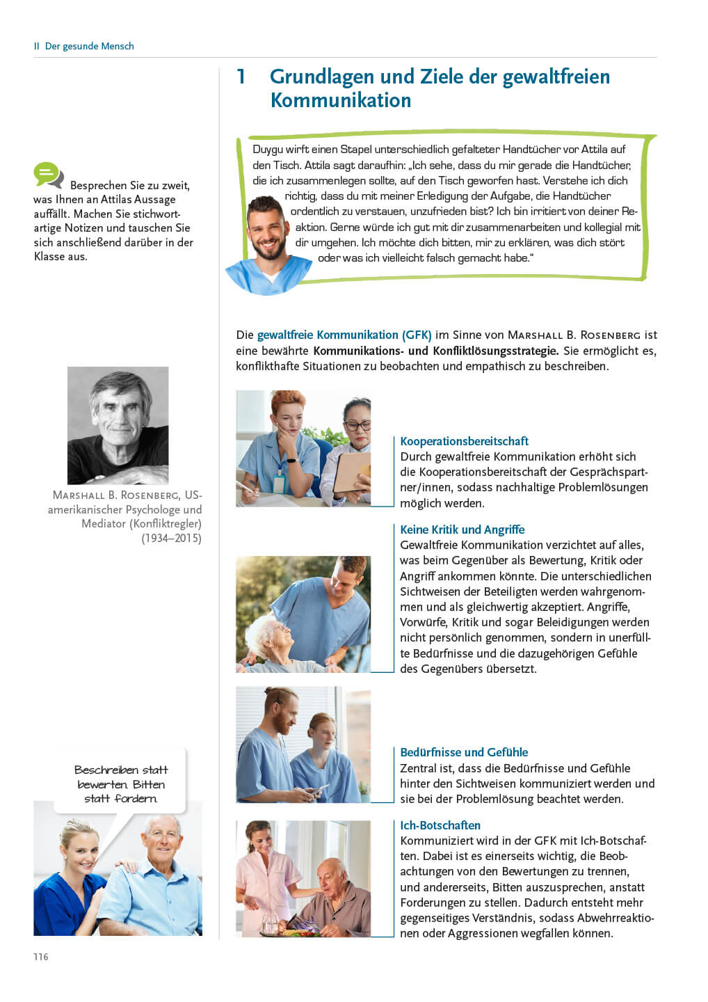 Ein besonderes Augenmerk wird auf die Praxisrelevanz der Inhalte gelegt. Anhand von Beispielen und Fallbeispielen aus dem Pflegealltag werden die theoretischen Inhalte veranschaulicht und leichter zugänglich gemacht. Zahlreiche Reflexions- und Diskussionsaufgaben sowie Rollenspiele motivieren die Auszubildenden nicht nur zur Kommunikation, sondern fördern auch ihre soziale Kompetenz und bereiten sie damit auf ihren Beruf als Pflege(fach)assistenz vor.