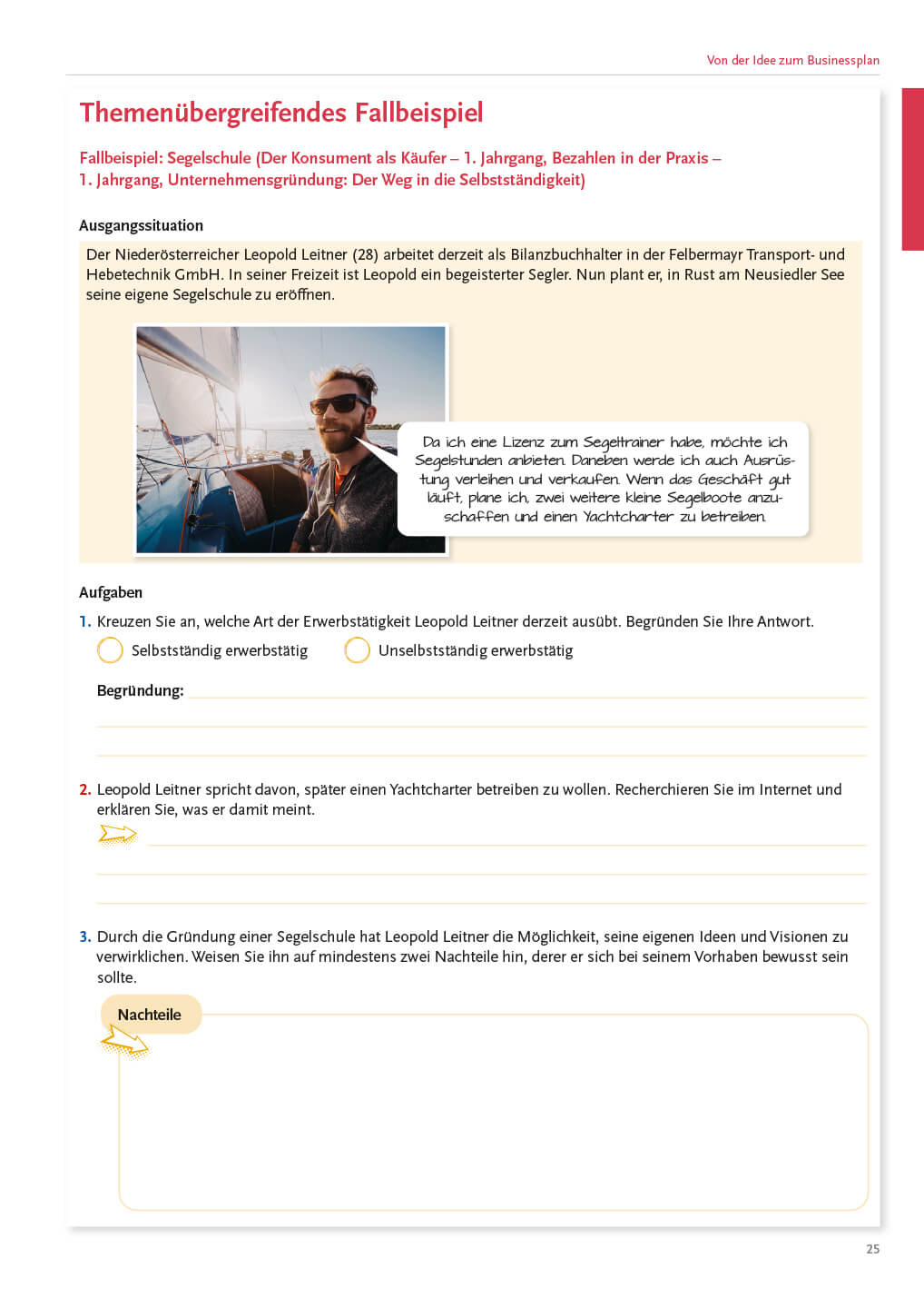 Wir holen für Sie die Praxis ins Klassenzimmer! Worauf muss ich bei der Wahl der Rechtsform achten? Mit welchen Werbestrategien positioniere ich mein Produkt? Wie erstelle ich einen Businessplan? Diese und viele weitere Themen werden anhand spannender Praxisfälle realer Unternehmen behandelt. Die Schüler/innen erhalten dabei tiefe Einblicke in das Innenleben verschiedener Unternehmen und Branchen.