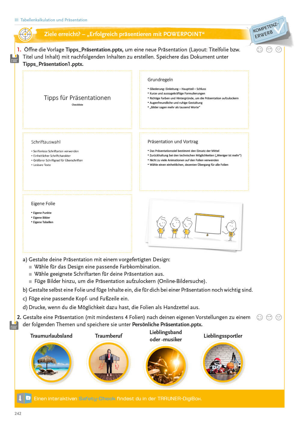 „Praxiserlebnis – Digitale Grundbildung“ setzt auf eine aktive Unterrichtsgestaltung – von der ersten Stunde an. Kurze, klar und verständlich formulierte Theorieblöcke wechseln sich mit zahlreichen praxisnahen Anwendungsbeispielen ab. Die Schülerinnen und Schüler können ihr Computerwissen sofort anwenden und festigen.