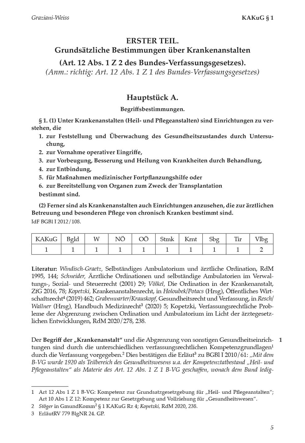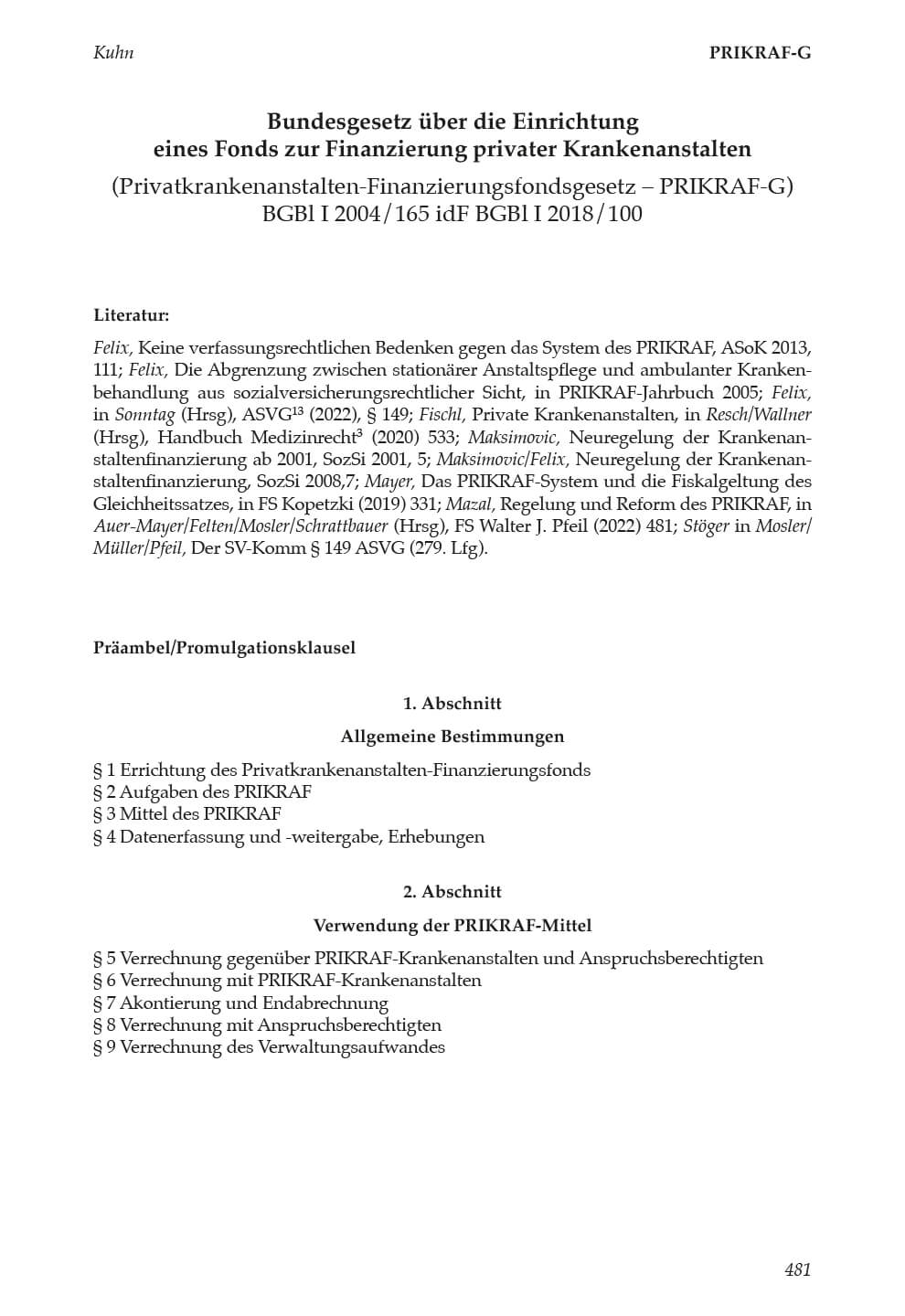 Die Kommentierung enthält Verweise auf die einzelnen Paragrafen der neun Ausführungsgesetze. Zusätzlich wurde das für die Finanzierung vieler Privatkrankenanstalten wichtige PRIKRAF-G aufgenommen und das Bundesgesetz über die Dokumentation im Gesundheitswesen erstmals kommentiert.