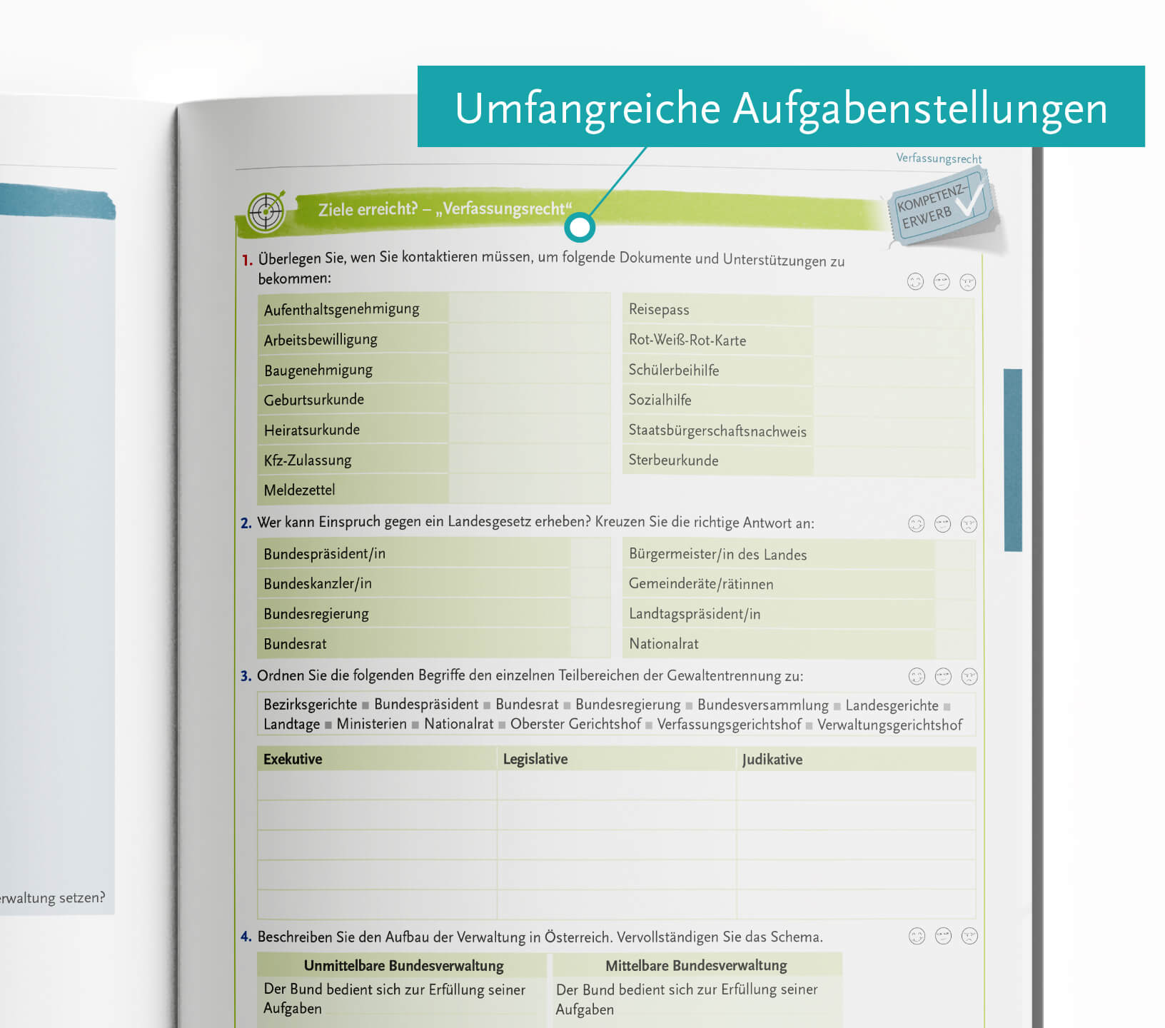 - Österreichisches und Europäisches Recht (Verfassungsrecht – Gerichtsorganisation – Die Sozialpartner und ihre Interessenvertretungen – Individuelle Rechtsinteressen (Staatsbürgerschaftsrecht – Menschenrechte – EU)