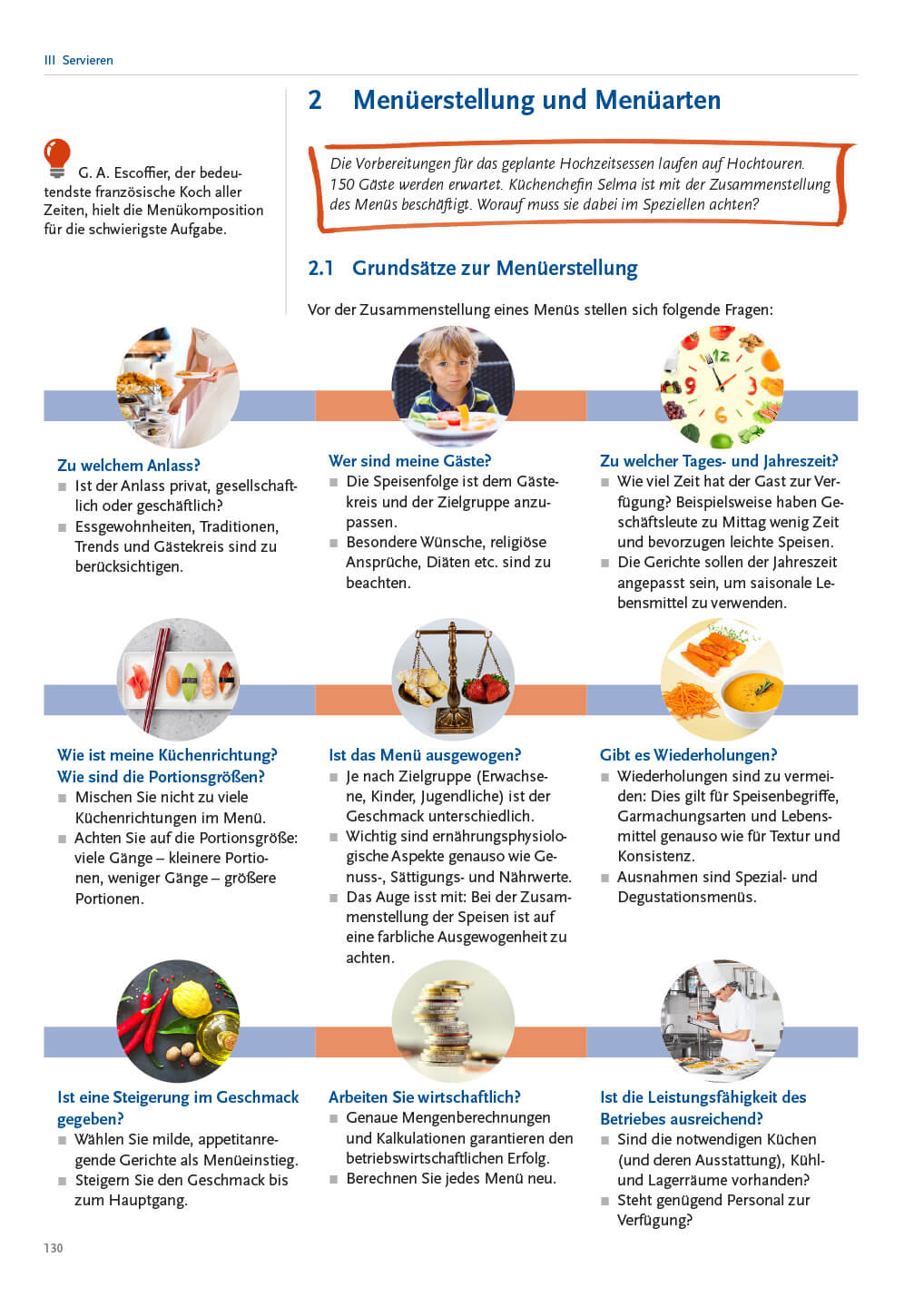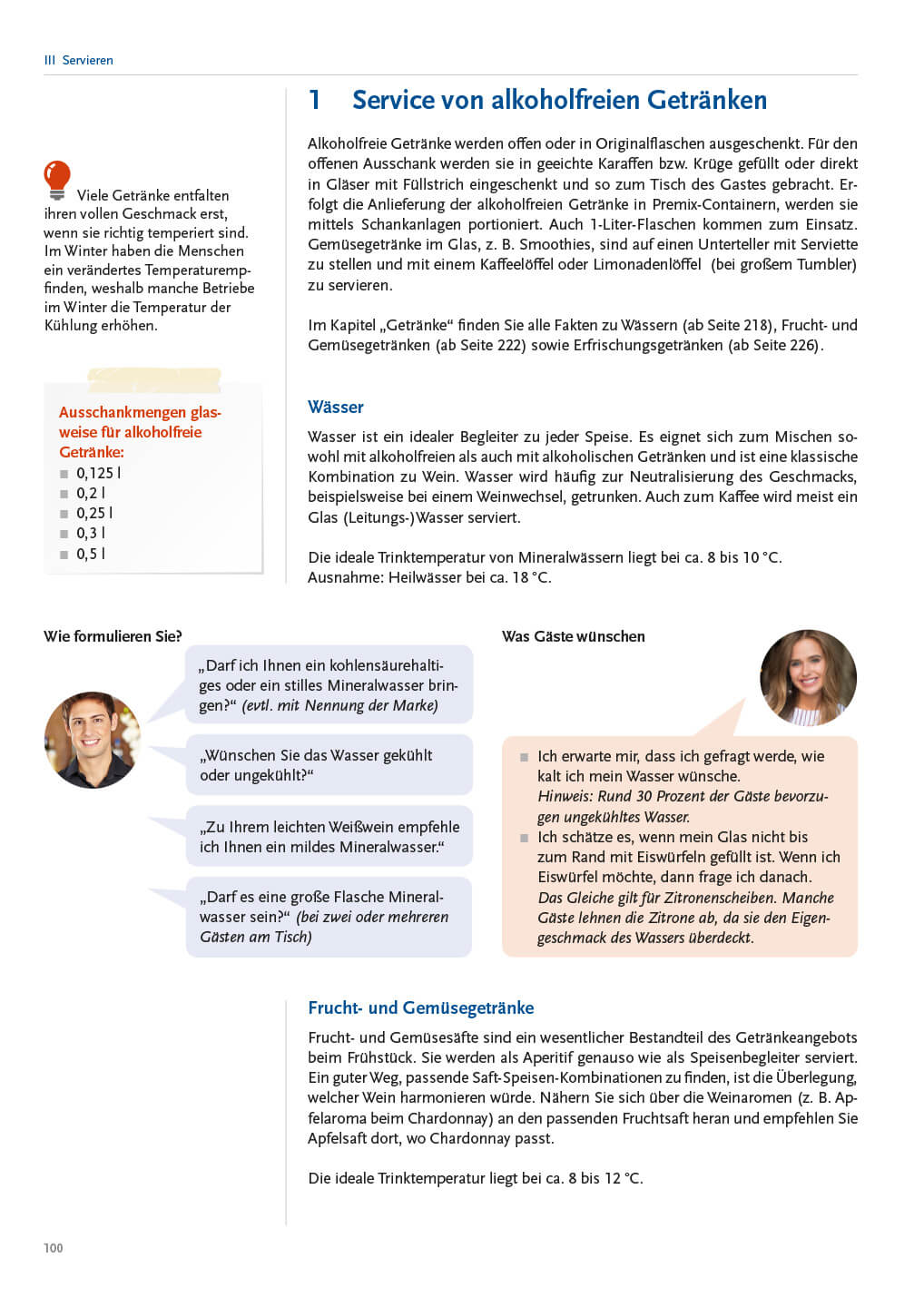 Guter Service ist viel mehr, als bloß Teller „herumzutragen“! Um als Servicemitarbeiter/in erfolgreich zu sein, muss man einerseits die Basistechniken beherrschen und andererseits über das betriebliche Angebot (und darüber hinaus) bestens Bescheid wissen. Denn Gästeberatung ist auch Verkauf und demnach Überzeugungsarbeit. Manche Gäste haben sich ihre Neugier erhalten – sie sind für Neues leicht zu begeistern. Gäste, die sich etwas reservierter geben, sind schon eine größere Herausforderung. Hier ist große Fachkenntnis gefragt.