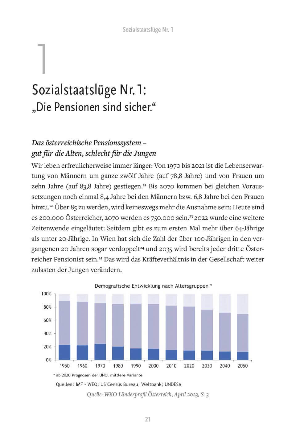 Der Autor (hier im Interview) führt verständlich und mit vielen Beispielen vor Augen, wie brüchig die sozialen Sicherungssysteme geworden sind – Stichwort Pensionen, „Reparaturmedizin“ oder Arbeitskräftemangel. Er nimmt kein Blatt vor den Mund und spricht tabulos jene Schwachstellen an, vor denen man in Österreich seit vielen Jahren die Augen verschließt. Gleichzeitig zeigt er konkrete Lösungen auf, wie der Sozialstaat zukunftsfit gemacht werden kann.
