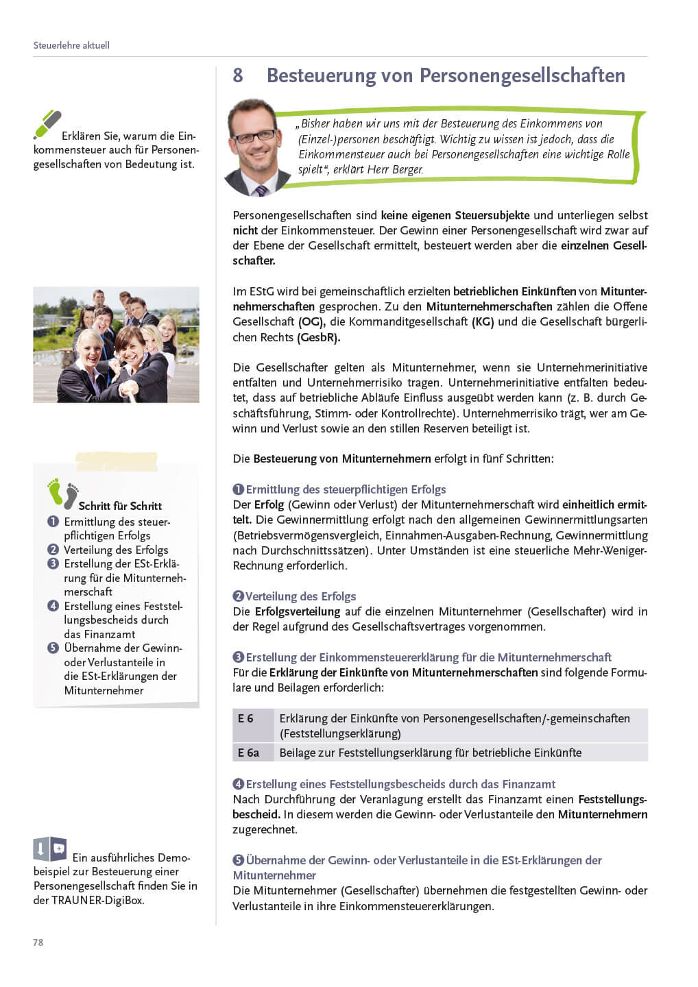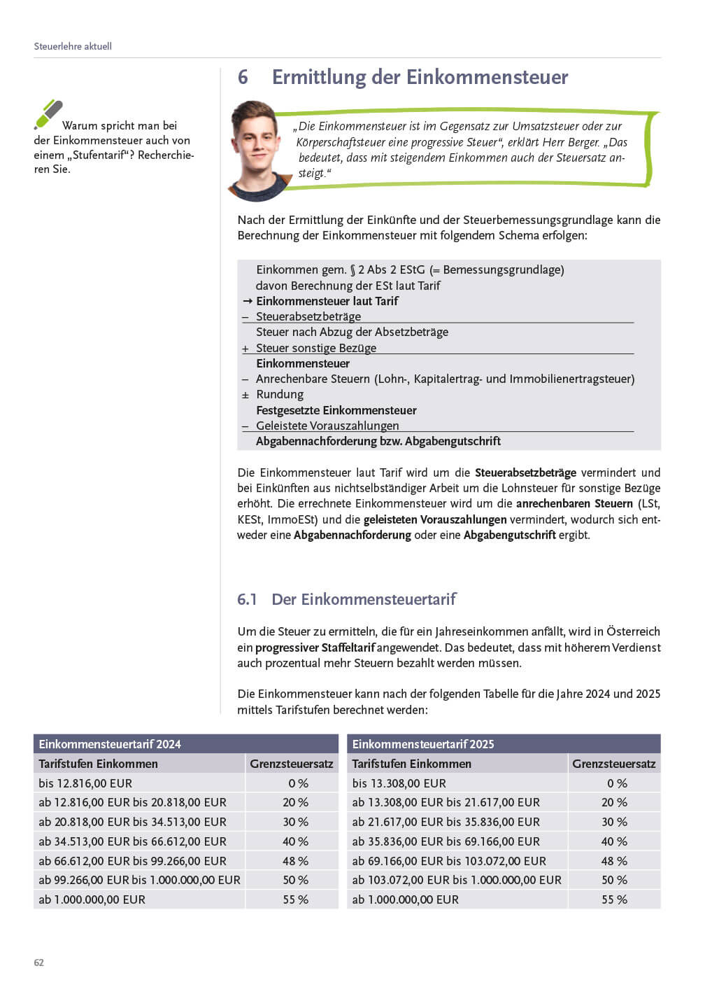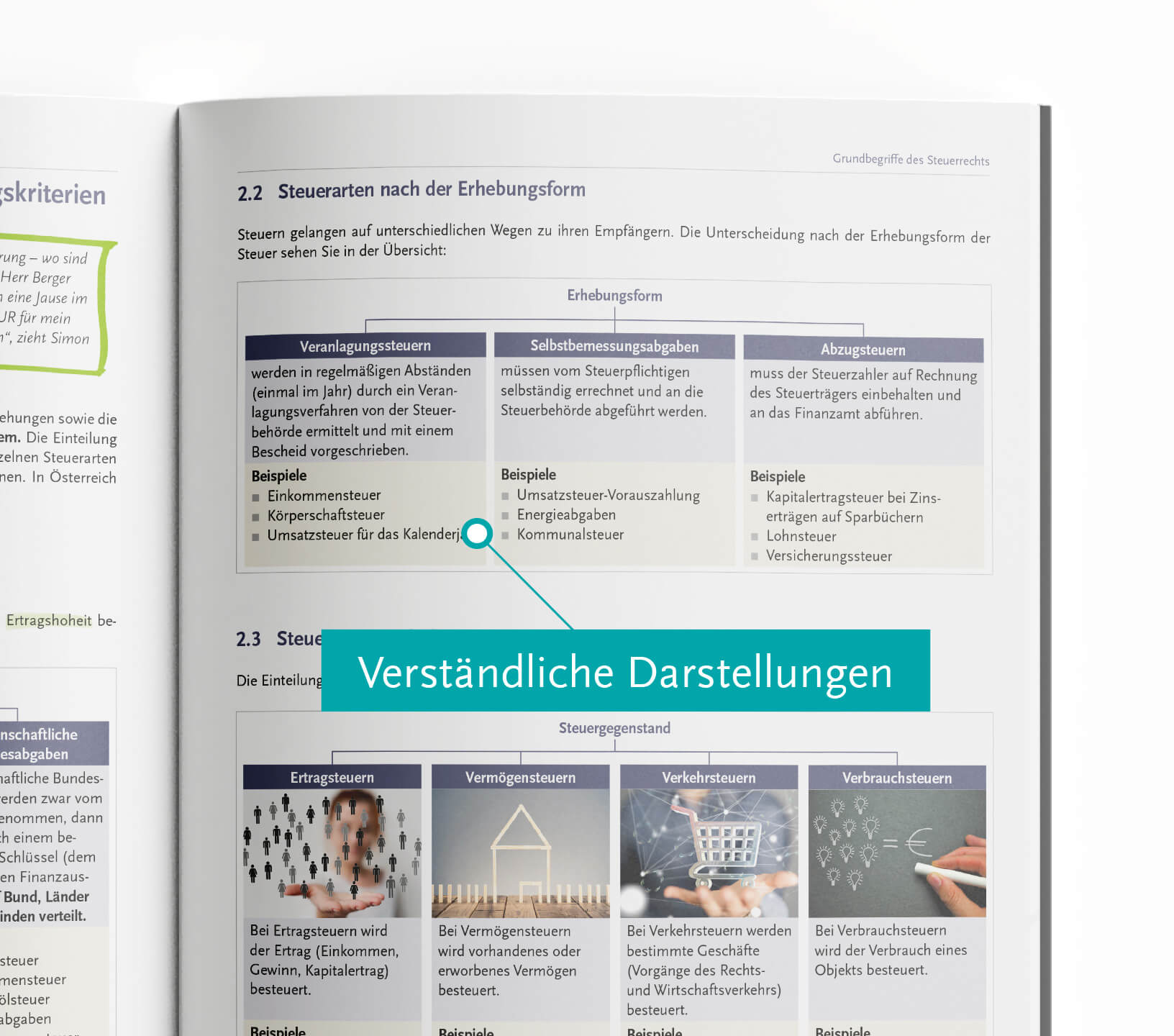 Das Buch „Steuerlehre aktuell“ wird jährlich zu Beginn des Kalenderjahres aktualisiert und überarbeitet. Somit sind Sie immer auf dem neuesten Informationsstand hinsichtlich Steuern, Beiträgen, Gebühren sowie Gesetzesänderungen. Die wichtigsten Steuern werden praxisorientiert, anschaulich und schülergerecht anhand der „Steuerberatungskanzlei Berger“ vermittelt.
