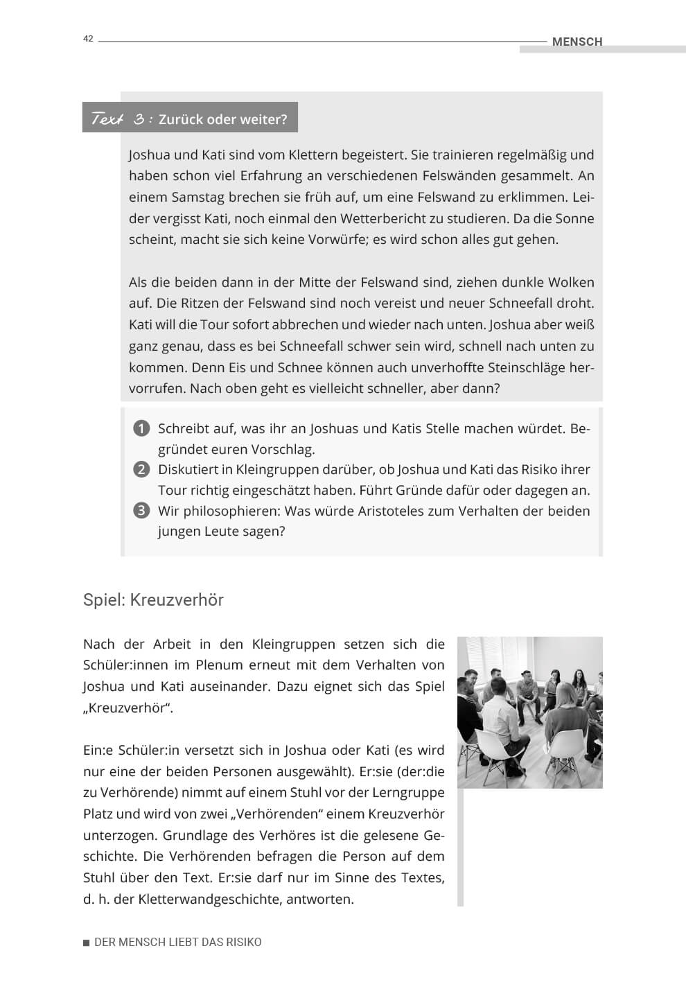 Durch vielfältige Einstiege in verschiedene ethische Themen, wird an der Lebenswelt von Jugendlichen angeknüpft und ihr Interesse geweckt. Kurze Texte von Philosoph:innen dienen als Impulse zum Nachdenken und vermitteln ethisches Grundwissen. Den Abschluss jedes Kapitels bilden Anregungen zum Weiterdenken.