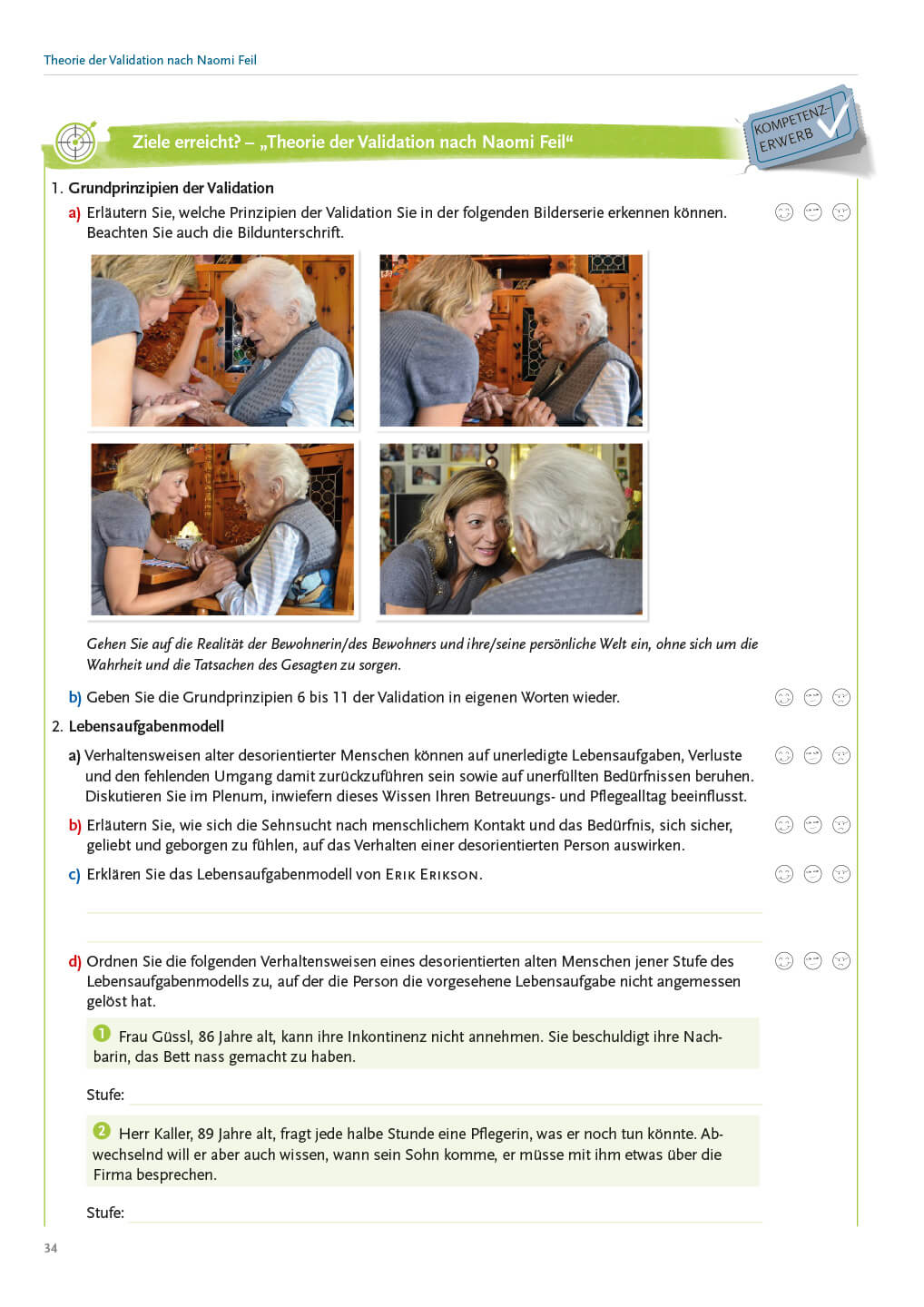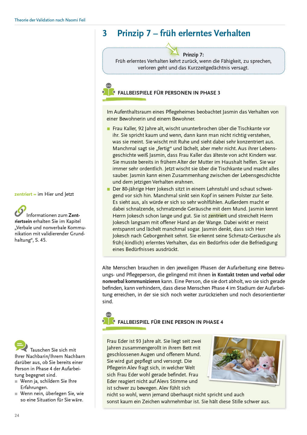 Als Arbeitsbuch konzipiert, wird die Theorie anschaulich und mithilfe vieler Praxis- und Fallbeispiele vermittelt. Das Buch ist zielgruppengerecht und nach einem bewährten didaktischen Konzept aufbereitet. Es dient Ihnen als wertvolle Unterstützung im Lehren, Lernen und Anwenden des Basiswissens von Validation nach Naomi Feil.
