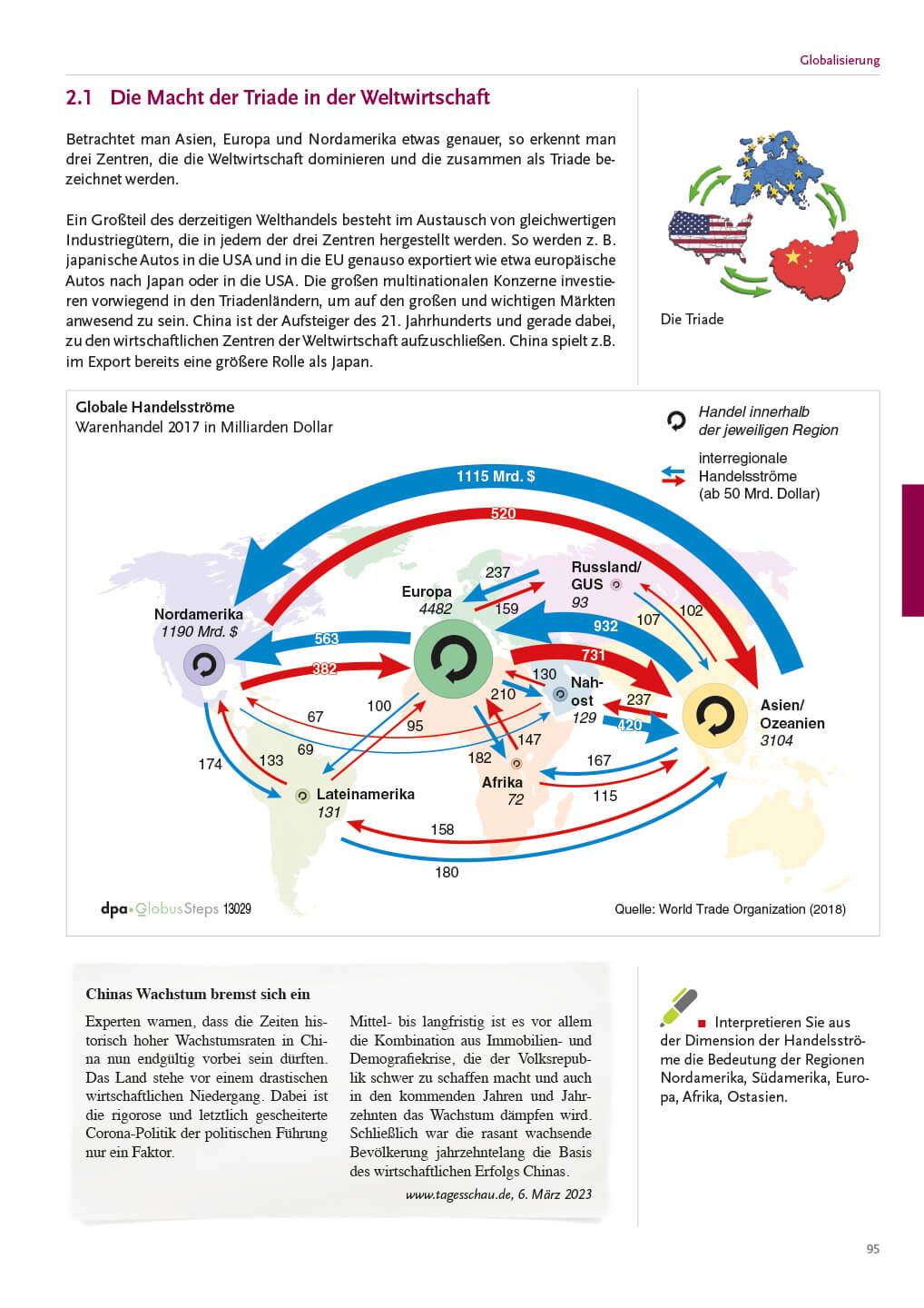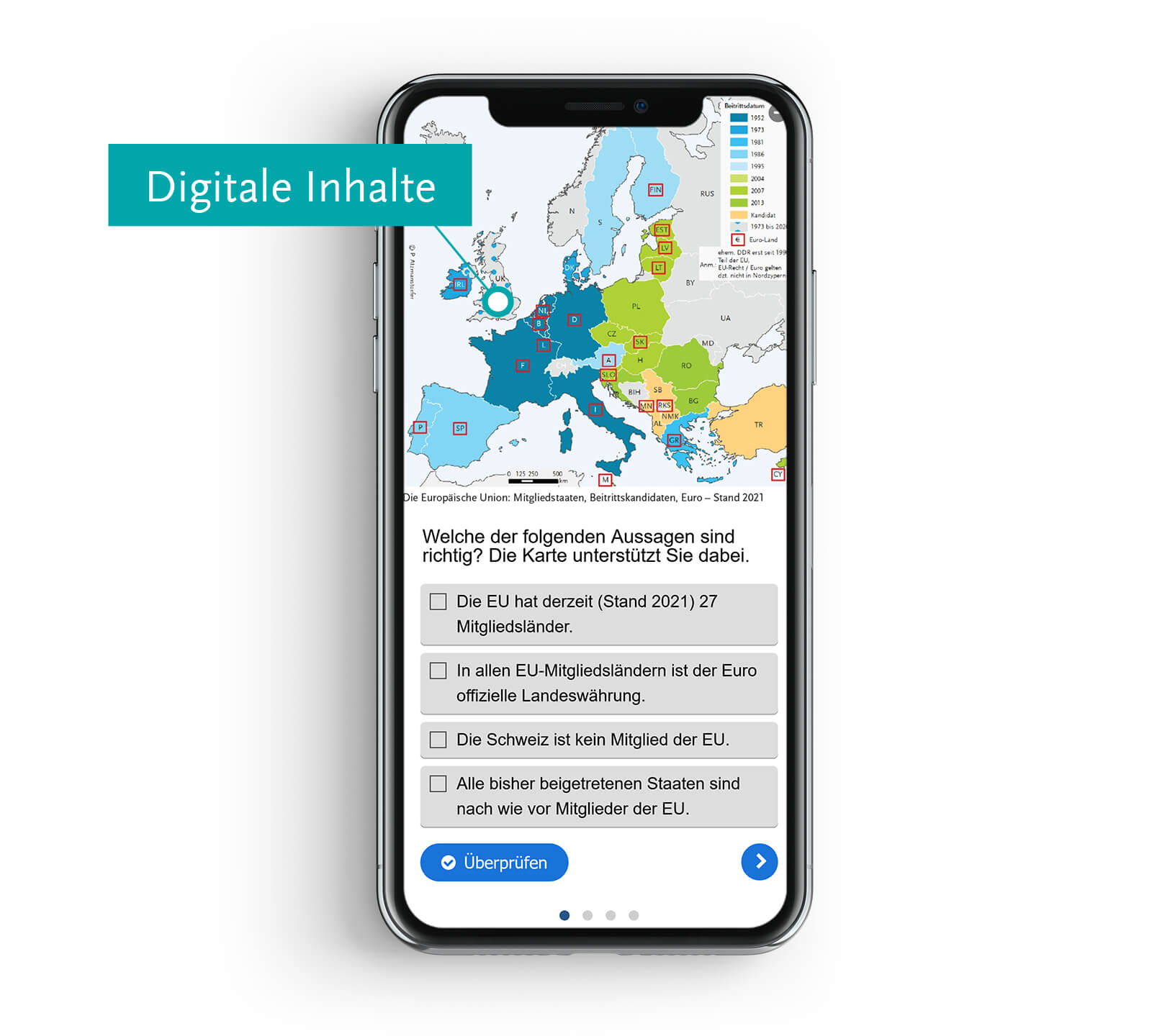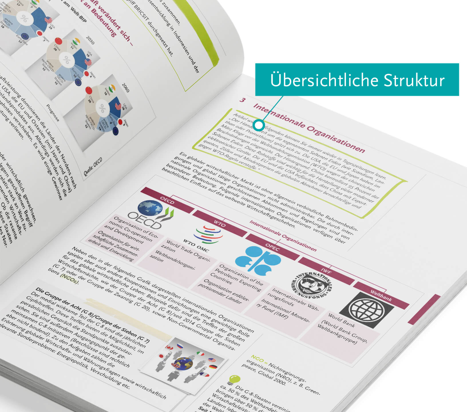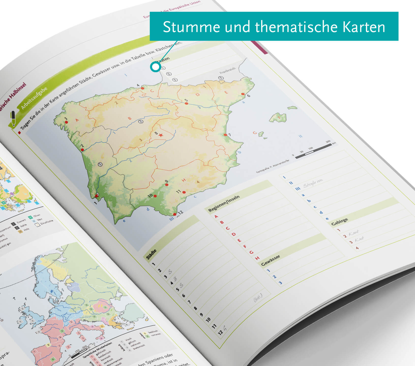 Räumliche Gegebenheiten werden in zahlreichen Karten dargestellt. Damit können die Schüler/innen ihr topografisches Grundwissen festigen und vertiefen. Ziel ist es, Ursachen und Folgen menschlichen Handelns darzustellen, Zusammenhänge zu begreifen – die Welt zu verstehen.