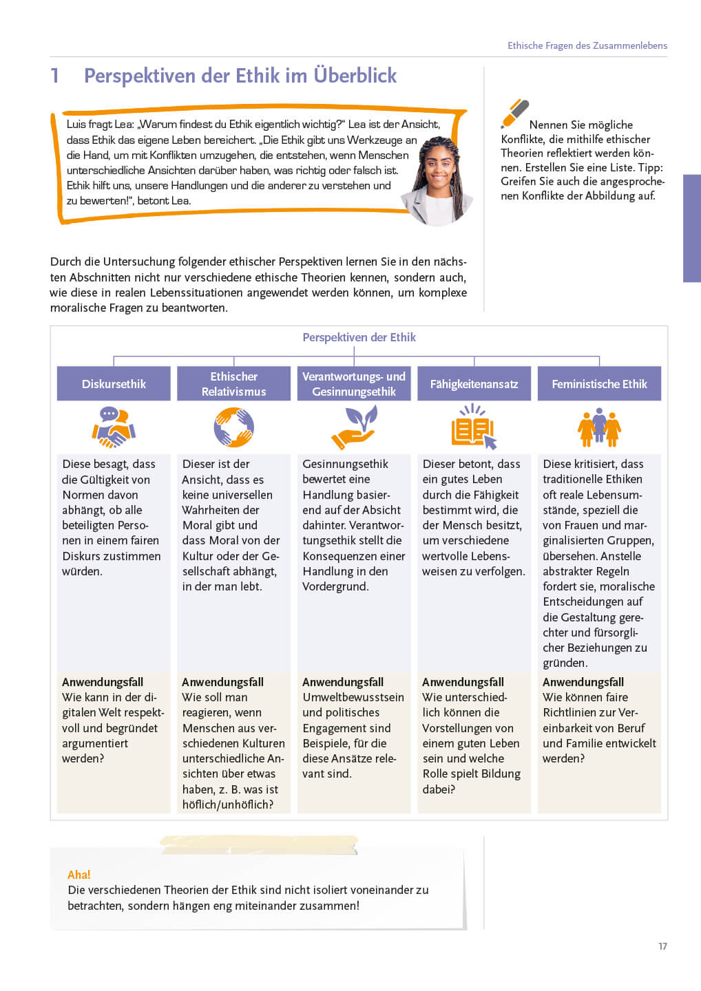 Erleben Sie mit der Ethik-Schulbuch-Reihe „Vielfalt (er)leben“, wie unterschiedliche Weltanschauungen das Leben der Schüler/innen bereichern können. Inspirierende Inhalte, zahlreiche Texte, interessante Persönlichkeiten und ein reichhaltiger Methodenpool helfen dabei, andere Werthaltungen und Glaubensvorstellungen kennenzulernen und zu respektieren. Der Mut, über den eigenen Tellerrand zu schauen, wird gefördert. Unterschiedliche Sichtweisen bieten viel Gesprächsstoff für einen anregenden Unterricht.